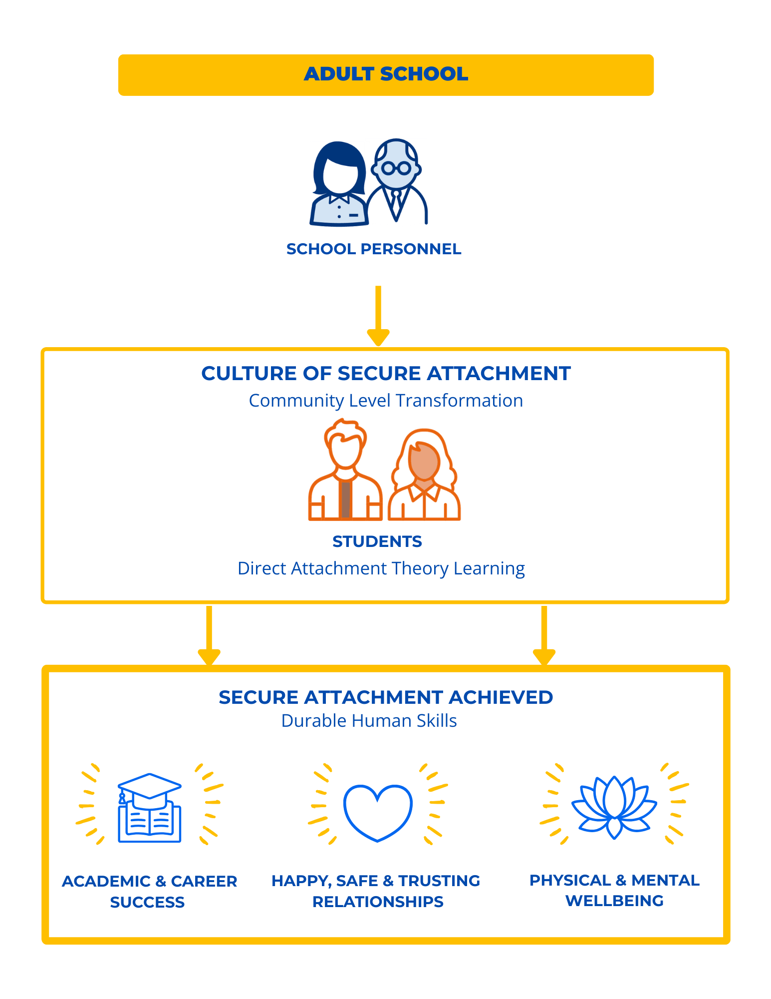 Our teen and adult student workshop series teaches what no one else is: how to identify their attachment patterns, develop secure strategies, and create lasting change. When students understand themselves and others through the lens of attachment, they build the foundation for lifelong resilience, academic and career success, and healthier relationships