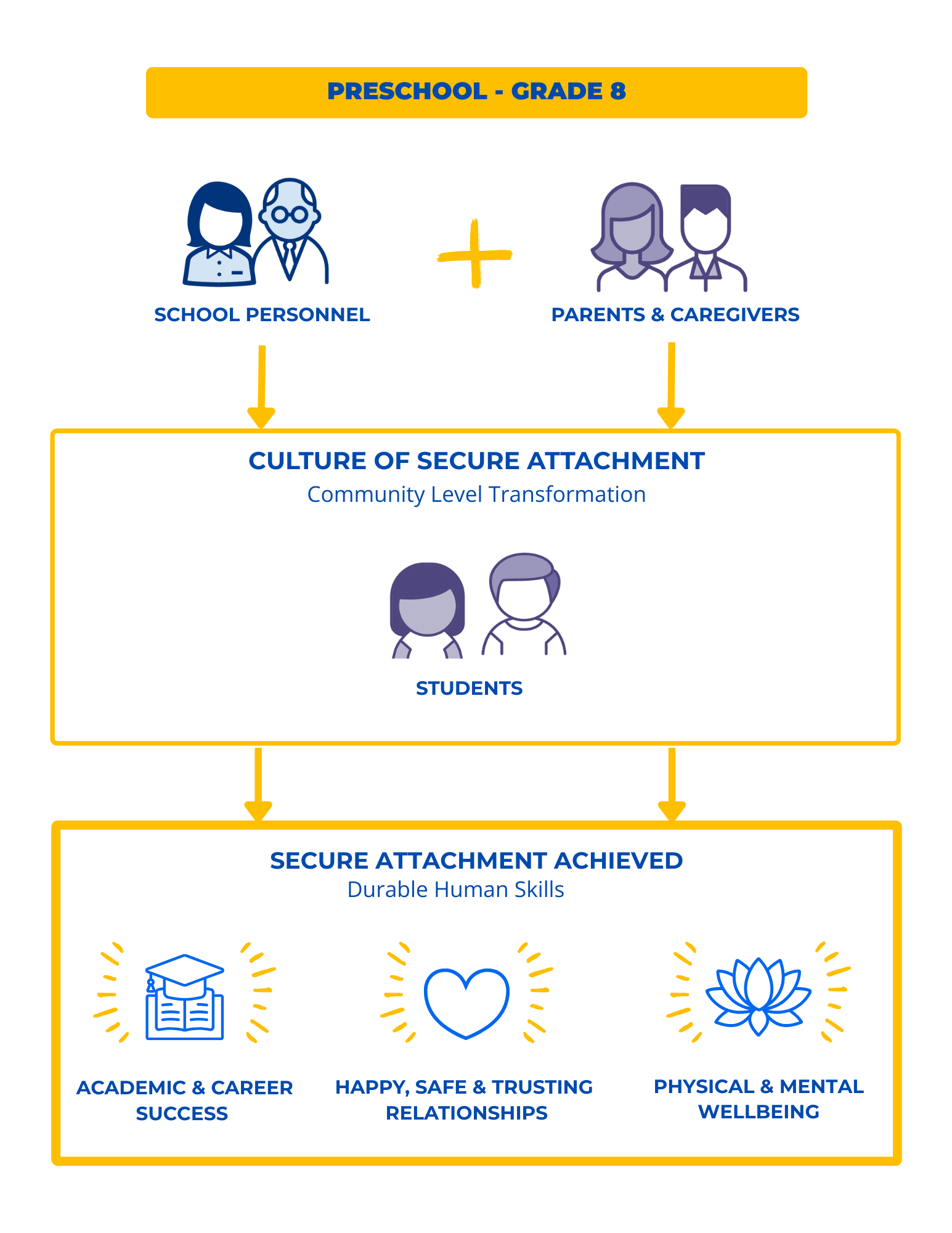 Research shows that every child needs at least one stable, secure relationship with a trusted adult to thrive emotionally, socially, and academically. And only 30% of the general population is secure.